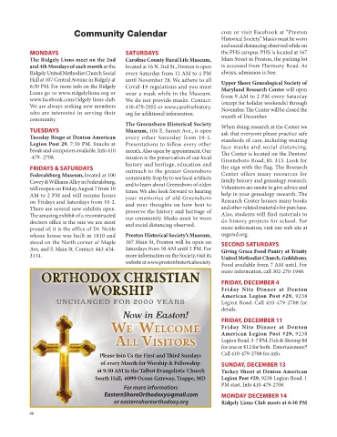 or easternshoreorthodoxy.org Ridgely Lions Club meets at 6:30 PM