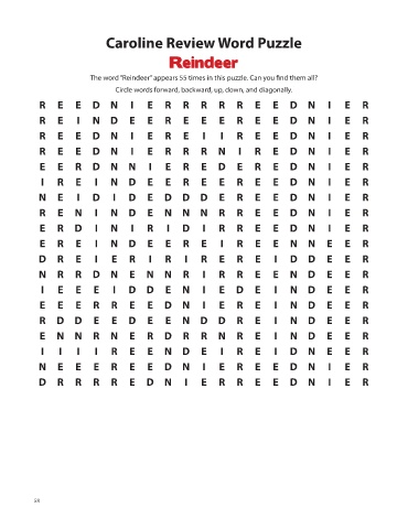 The word “Reindeer” appears 55 times in this puzzle. Can you find them all?