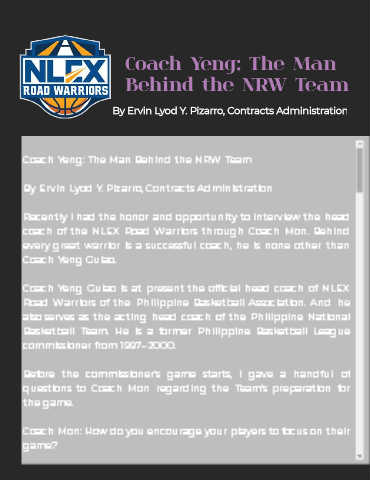 Coach Yeng: The Man Behind the NRW Team By Ervin Lyod Y. Pizarro, Contracts Administration