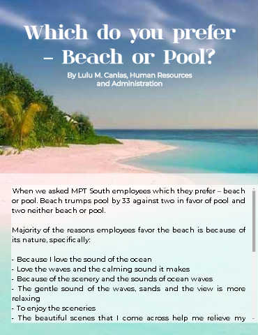 Which do you prefer – Beach or Pool? By Lulu M. Canlas, Human Resources and Administration