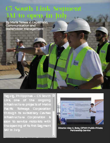 C5 South Link Segment 3A1 to open in July By Maria Teresa V. Capistrano, Communication and Stakeholder Management Director Alex G. Bote, DPWH Public-Private Partnership Service