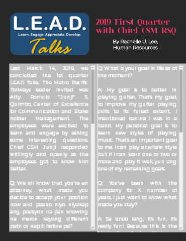 2019 First Quarter with Chief CSM RSQ By Rachelle U. Lee, Human Resources