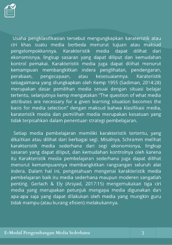 penting. Gerlach & Ely (Arsyad, 2017:15) mengemukakan tiga ciri