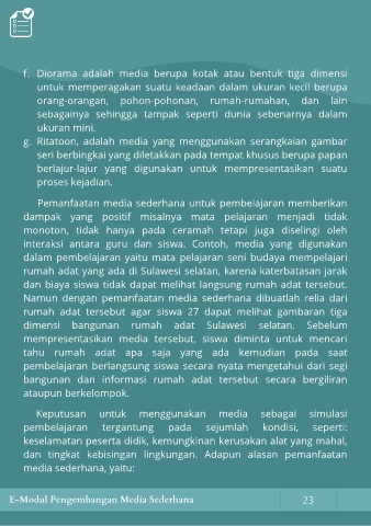 f. Diorama adalah media berupa kotak atau bentuk tiga dimensi