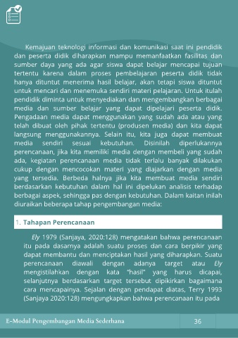 Ely 1979 (Sanjaya, 2020:128) mengatakan bahwa perencanaan