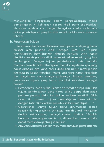 Berorientasi pada siswa (leaner oriented) artinya rumusan