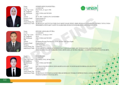 Judul Karya Tulis :HUBUNGAN INTENSITAS KOMUNIKASI DENGAN TINGKAT DEPRESI PADA LANSIA DI PSTW UNIT ABIYOSO