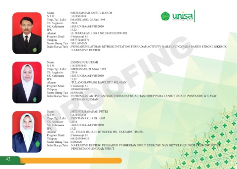 Program Studi :Fisioterapi S1