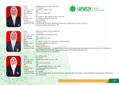 Tmp./Tgl. Lahir :PACITAN, 10 Maret 1999 Ilmu Kesehatan