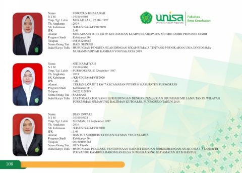 Tmp./Tgl. Lahir :MEKAR SARI, 25 Okt 1997 Ilmu Kesehatan