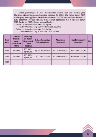 2019 sebanyak 150.000 lembar, maka beban depresiasi mesin fotokopi tahun