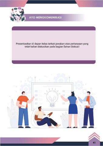 AYO MENGKOMUNIKASI Presentasikan di depan kelas terkait jawaban atas pertanyaan yang telah kalian diskusikan pada bagian Bahan Diskusi! 41