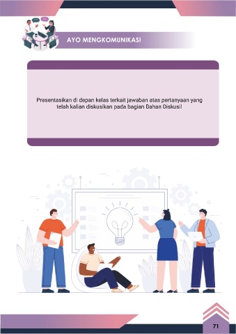 AYO MENGKOMUNIKASI Presentasikan di depan kelas terkait jawaban atas pertanyaan yang telah kalian diskusikan pada bagian Bahan Diskusi! 71