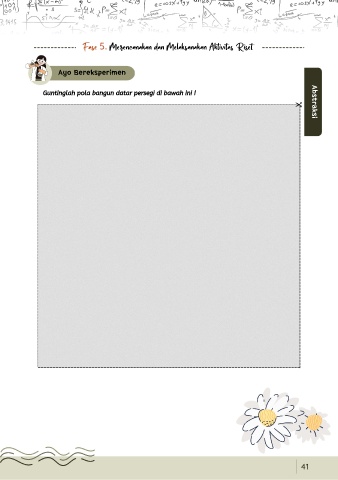 Fase 5. Merencanakan dan Melaksanakan Aktivitas Riset Ayo Bereksperimen Guntinglah pola bangun datar persegi di bawah ini ! Abstraksi 41