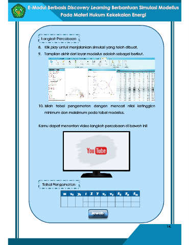 9. Tampilan akhir dari layar modellus adalah sebagai berikut.