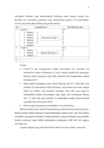 merupakan deskripsi yang mencerminkan hubungan aspek dengan rentang skor.