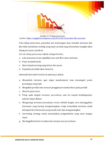 Pada tahap penurunan, penjualan dan keuntungan akan semakin menurun dan