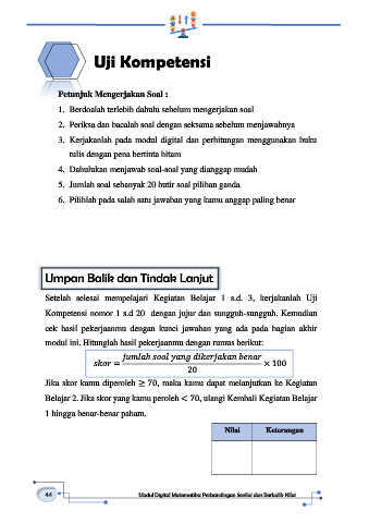 Belajar 2. Jika skor yang kamu peroleh < 70, ulangi Kembali Kegiatan Belajar