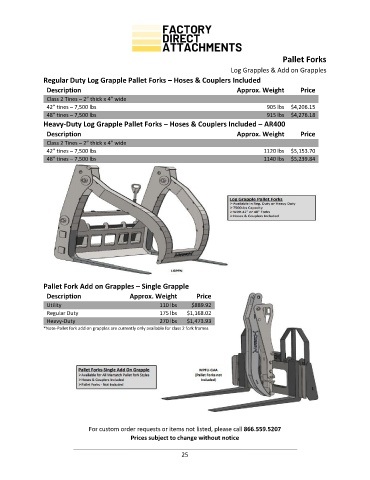*Note-Pallet fork add on grapples are currently only available for class 2 fork frames