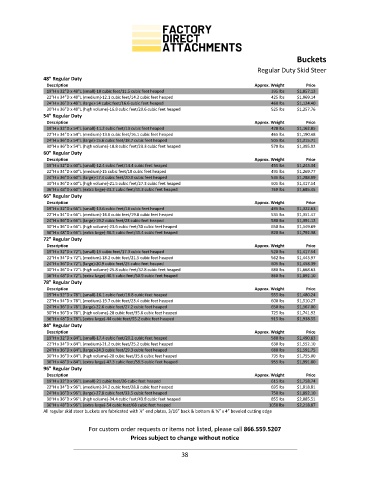 All regular skid steer buckets are fabricated with ¼” end plates, 3/16” back & bottom & ¾” x 4” beveled cutting edge
