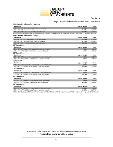 All demolition buckets are fabricated with ¼” end plates, ¼” back & bottom, AR-400 bottom runners, ¾” X 6” beveled cutting edge with 12” grill included