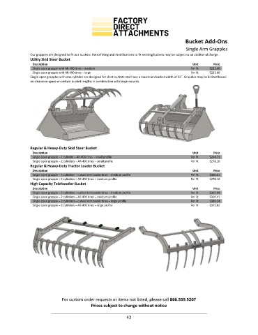 Single open grapple – 2 cylinders – curved removable tines – medium profile Per Ft $367.09