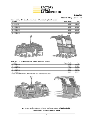 For extra heavy-duty stone fork grapples 40” high add $1,545.00 to above prices