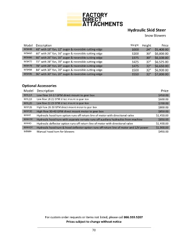 WSH72 72” with 28” fan, 20” auger & reversible cutting-edge 1425 32” $6,525.00