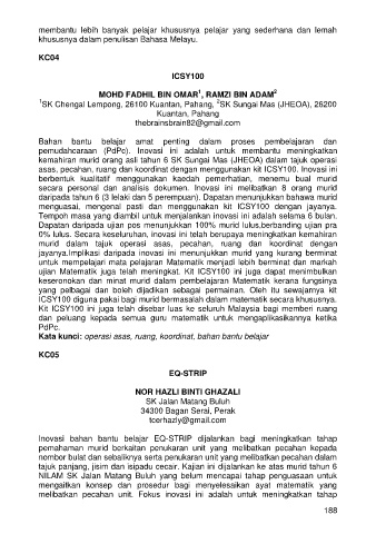 asas, pecahan, ruang dan koordinat dengan menggunakan kit ICSY100. Inovasi ini