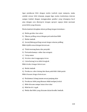Media tumbuh disiapkan dalam polibag dengan ketentuan :