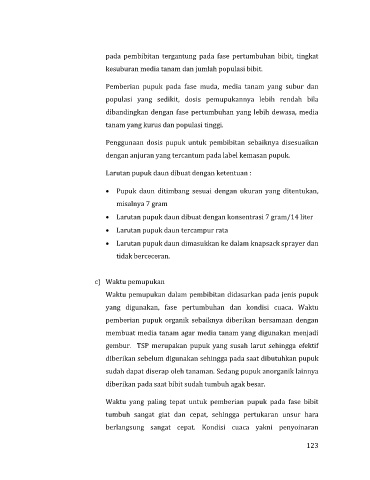 Penggunaan dosis pupuk untuk pembibitan sebaiknya disesuaikan