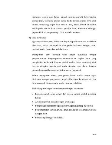 pemupukan, terutama pupuk daun. Pada kondisi panas terik atau