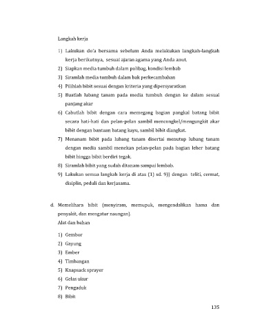 d. Memelihara bibit (menyiram, memupuk, mengendalikan hama dan