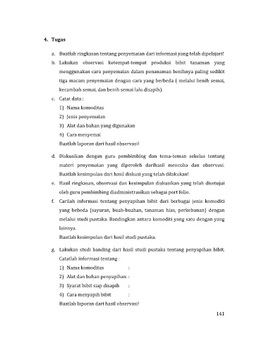 f. Carilah informasi tentang penyapihan bibit dari berbagai jenis komoditi