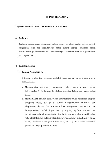 Kegiatan pembelajaran penyiapan bahan tanam berisikan uraian pokok materi: