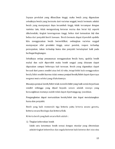 Benih yang baik memenuhi tiga kriteria yaitu kriteria secara genetis,