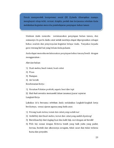 2) Ambil biji dari buah melon, tomat dan cabai yang sudah dipotong!