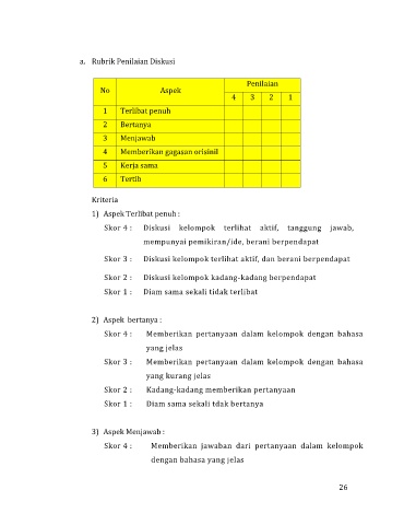 Skor 4 : Diskusi kelompok terlihat aktif, tanggung jawab,