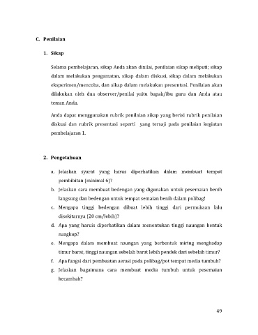 diskusi dan rubrik presentasi seperti yang tersaji pada penilaian kegiatan
