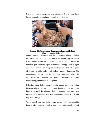 Gambar 18. Pemotongan dan penguraian sabut kelapa