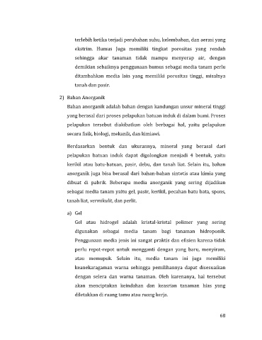 sebagai media tanam yaitu gel, pasir, kerikil, pecahan batu bata, spons,