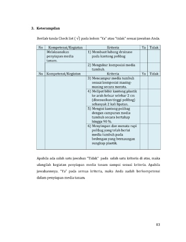 ulangilah kegiatan penyiapan media tanam sampai sesuai kriteria. Apabila