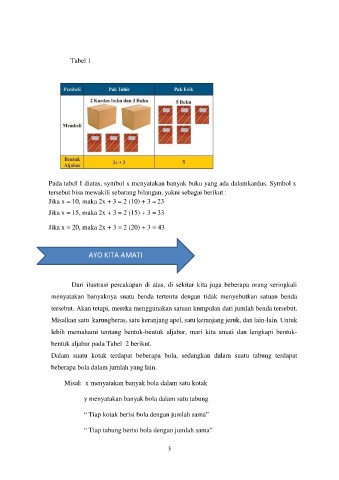Pada tabel 1 diatas, symbol x menyatakan banyak buku yang ada dalam kardus. Symbol x