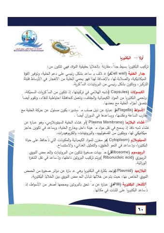 ‫اﻷﺳ ا )‪Flagella‬ﻫ( ﺎرة ﻋ ذﯾﻞ ﺻﻠ ﻣ ُ ﯾ ‪ ،‬ن ﻣ ل ﻋ ﺣ ﺔ اﻟ ﻠ ﺔ ﻣﻊ‬