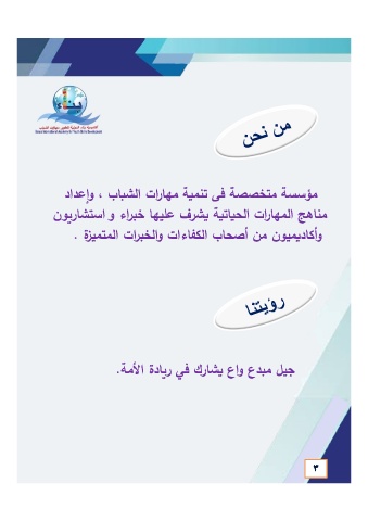 ﻣ ﺳ ﺔ ﻣ ﺔ ﻓﻰ ﺗ ﺔ ﻣﻬﺎرات اﻟ ﺎب ،وﻋ اد ﻣ ﺎﻫﺞ اﻟ ﻬﺎرات اﻟ ﺎﺗ ﺔ ف ﻋﻠ ﻬﺎ ﺧ اء و اﺳ ﺎر ن وأﻛﺎد ن ﻣ أﺻ ﺎب اﻟ ﻔﺎءات واﻟ ات اﻟ ة . ﺟ ﻞ ﻣ ع واع ﺎرك ﻓﻲ ر ﺎدة اﻷﻣﺔ.