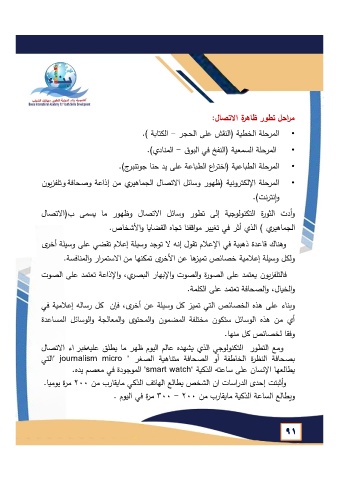 • اﻟ ﺣﻠﺔ اﻹﻟ وﻧ ﺔ ) ﻬ ر وﺳﺎﺋﻞ اﻻﺗ ﺎل اﻟ ﺎﻫ ﻣ إذاﻋﺔ وﺻ ﺎﻓﺔ وﺗﻠﻔ ن