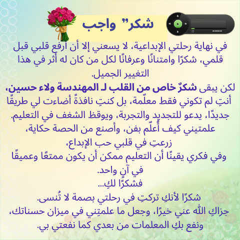 اﺬﻫ ﻲﻓ ﺮﺛأ ﻪﻟ نﺎﻛ ﻦﻣ ﻞﻜﻟ ﺎﻧﺎﻓﺮﻋو ﺎﻧﺎﻨﺘﻣاو اﺮﻜﺷ ،ﻲﻤﻠﻗ