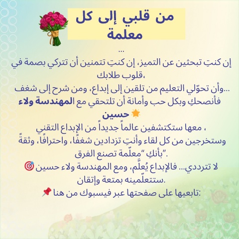 ﻦﻴﺴﺣ ءﻻو ﺔﺳﺪﻨﻬﻤﻟا ﻊﻣو ،ﻢﻠﻌُﻳ عاﺪﺑﻹﺎﻓ …يددﺮﺘﺗ ﻻ