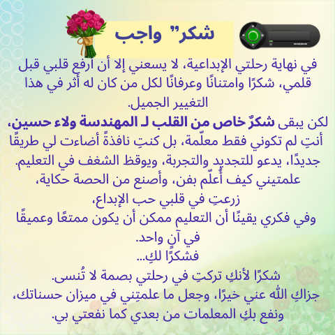 اﺬﻫ ﻲﻓ ﺮﺛأ ﻪﻟ نﺎﻛ ﻦﻣ ﻞﻜﻟ ﺎﻧﺎﻓﺮﻋو ﺎﻧﺎﻨﺘﻣاو اﺮﻜﺷ ،ﻲﻤﻠﻗ