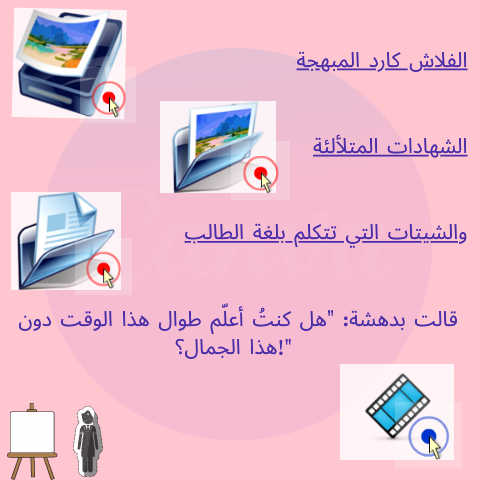 ﺔﺠﻬﺒﻤﻟا درﺎﻛ شﻼﻔﻟا ﺔﺌﻟﻸﺘﻤﻟا تادﺎﻬﺸﻟا ﺐﻟﺎﻄﻟا ﺔﻐﻠﺑ ﻢﻠﻜﺘﺗ ﻲﺘﻟا تﺎﺘﻴﺸﻟاو ّ نود ﺖﻗﻮﻟا اﺬﻫ لاﻮﻃ ﻢﻠﻋأ ُ ﺖﻨﻛ ﻞﻫ" :ﺔﺸﻫﺪﺑ ﺖﻟﺎﻗ ؟لﺎﻤﺠﻟا اﺬﻫ!"